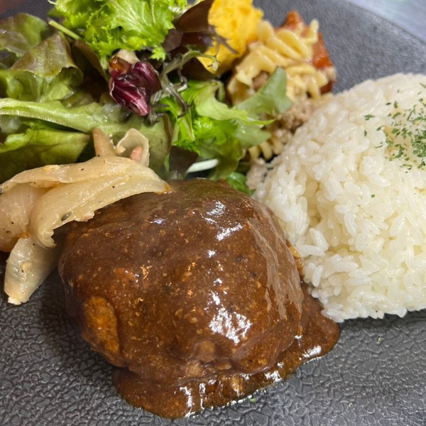 自家製デミグラスソースで煮込んだ自家製手ごねハンバーグです。